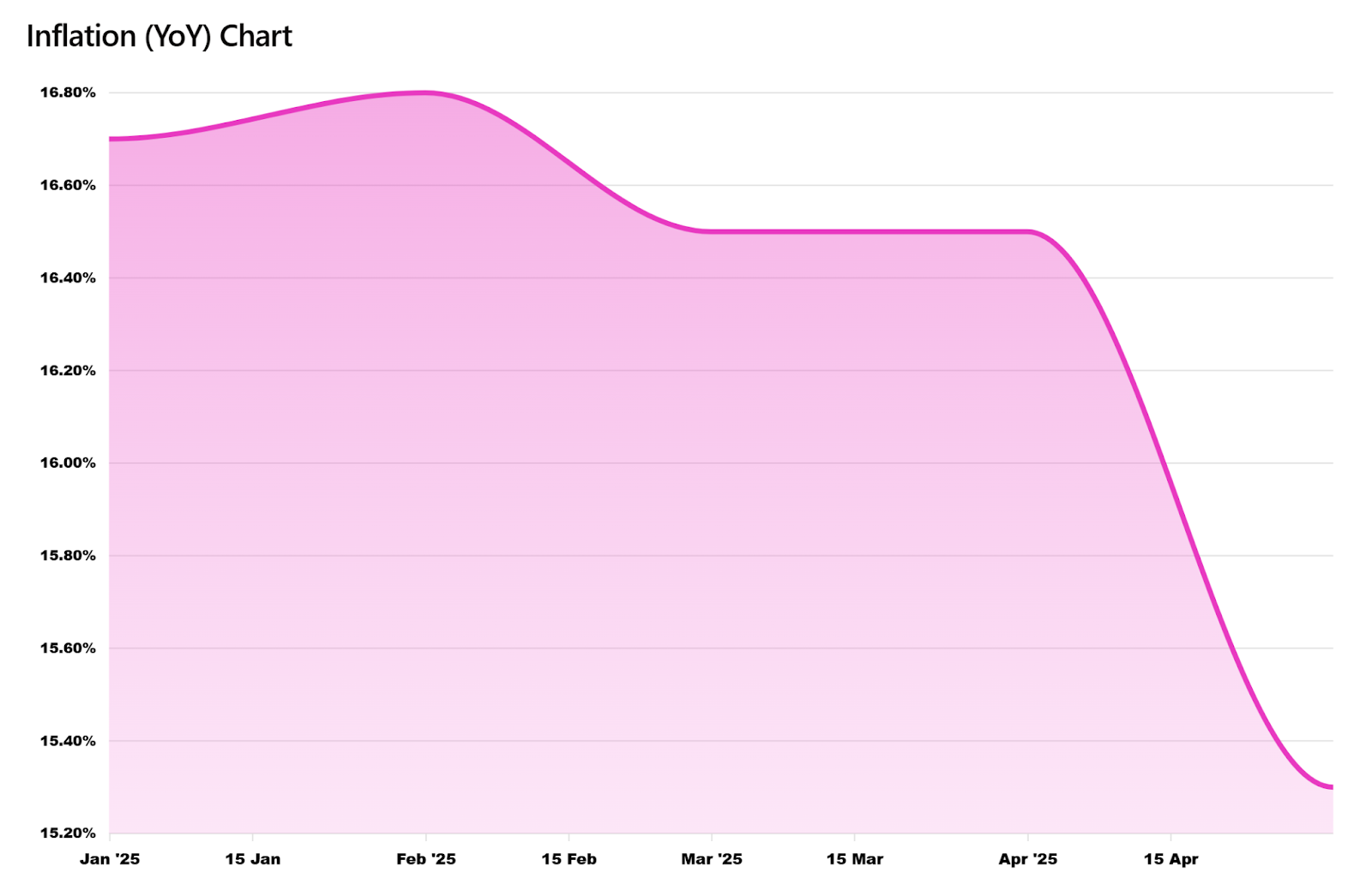 2025 began with the economy still showing signs of inflation as the YoY inflation rate increased by 0.10% from January 2025 to February 2025 to plateau at 16.80%, recovered and stagnated to 16.50% between March and April, and the miraculously entered into a disinflationary trend in May to close at 15.30%. As can be seen below in fig. 1, this drop in inflation is a large magnitude compared to prior changes and seemed to come out of thin air, depicting an image of an economy that is recovering from crises such as a long lasting drought, and a still on-going energy crisis.